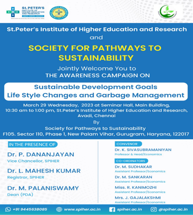 In accordance with these sustainable development objective “Clean water and Sanitation,” St. Peter’s Institute of Higher Education and Research (SPIHER) is fully committed to making it possible for students and residents of the community to access basic services related to water, sanitation, and hygiene. Over — acres, the Institute is home to approximately 7,000 people who participate in a wide range of activities.  Institute takes keen interest in fostering students’ holistic growth into responsible citizens of the future. In this context, the best management of facilities for water and sanitation is of the utmost importance for creating a healthy future. The Sharda University’s school buildings, hostels, and hospitals are all equipped with RO systems and have adequate sanitation facilities. In the hostel, mess, and Sharda hospital, hygiene guidelines are strictly followed. In all of its possible academic and non-academic operations, the Institute has initiated the promotion of environmentally friendly methods. The university’s campus-wide strategy for environmentally friendly, long-term, and short-term financial benefits is centered on environmentally conscious activities. In laboratories, greener and safer methods are used.  Memorandum of Understanding signed with External Agencies for disposing solid waste and E-waste collected in the campus. The university’s rainwater harvesting system ensures water recycling and reuse. For treating effluents, there is a STP with a capacity of 1 lakh litres; The sludge is used to make manure, and the recycled water is used for horticulture and the flushing system, Raw bore well water from campus is fed into the RO plant of capacity 500 litre/hr and the impure water from RO Plant after treatment is used for gardening in the campus