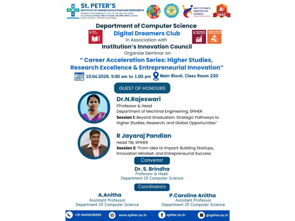 Department of computer science in Association with Institution’s Innovation Council organizes “Career Acceleration Series Higher Studies Research Excellence & Entrepreneurial Innovation ” on 10.04.2026